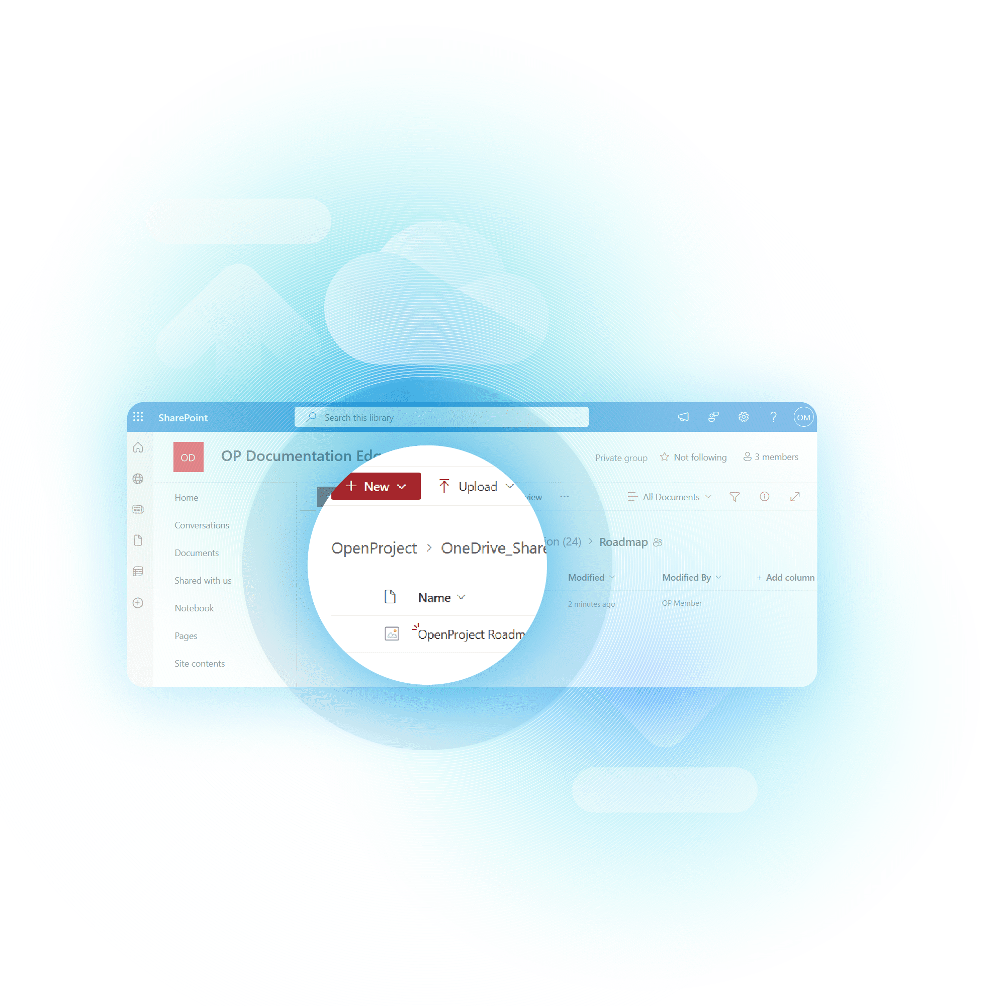 Leverage Microsoft’s cloud storage while maintaining a seamless link to OpenProject’s robust project management features. The integration bridges task tracking and document management, ensuring teams can efficiently collaborate without losing control over their data.