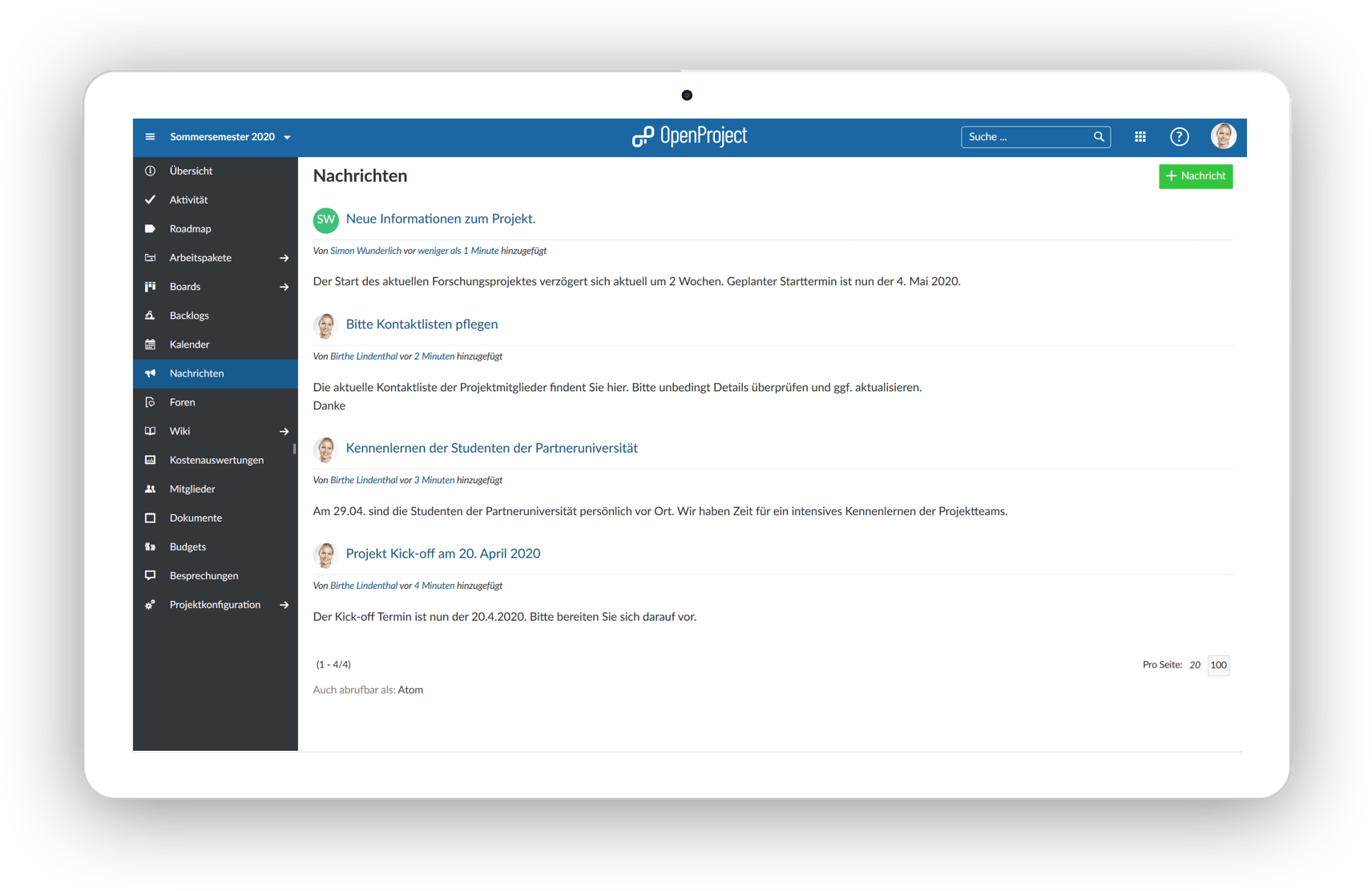 Über die News werden Neuigkeiten in Projekten effizient mit allen Projektmitgliedern geteilt, sodass jeder stets auf dem aktuellen Stand ist.