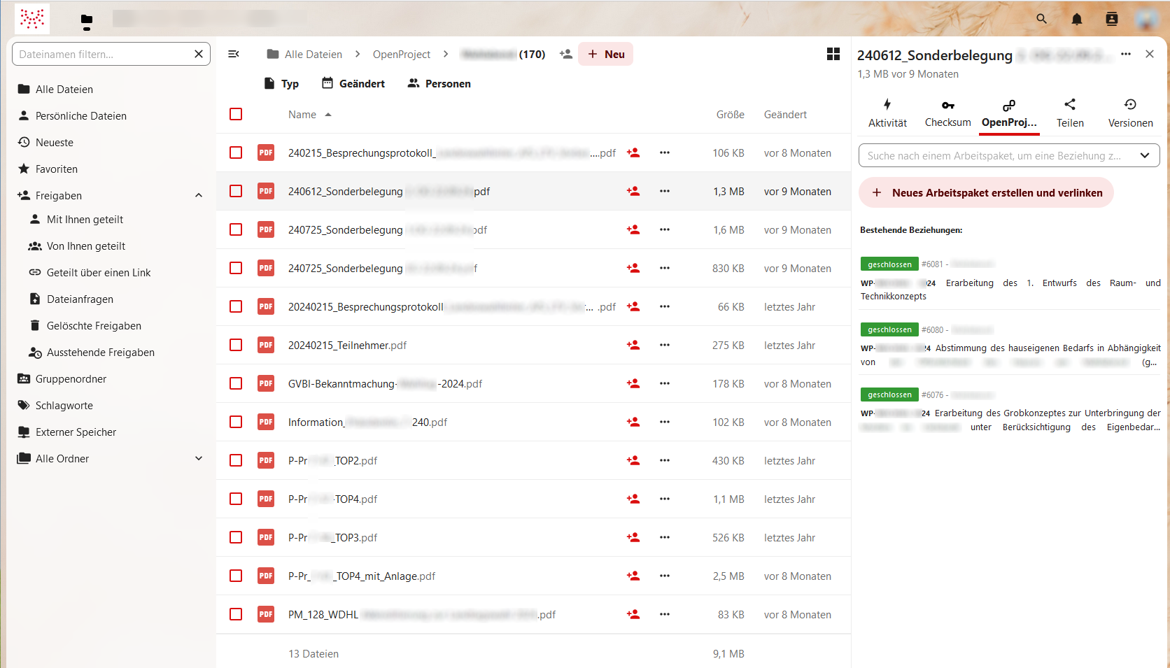 Dateien und Ordner mit Arbeitspaketen verlinken