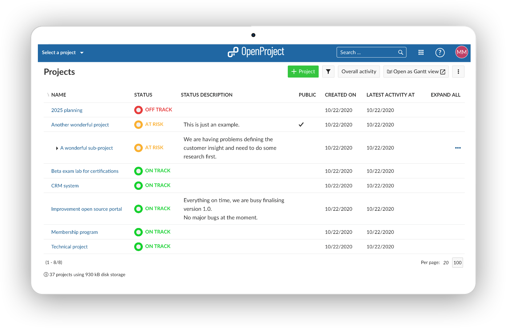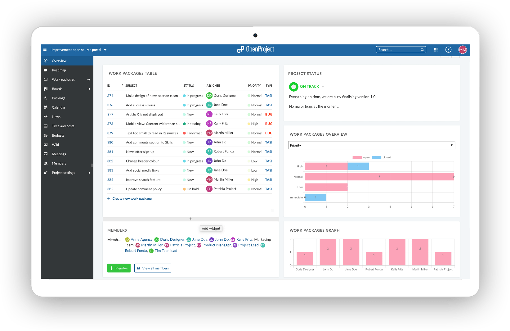 OpenProject ist für mich die beste Open Source Projektmanagementsoftware, die es gibt. Sie erlaubt es mir, alle Projekte und Aufgaben unter einem Dach zu sammeln und den Fortschritt einfach zu verfolgen. Es bietet sowohl Wasserfall- als auch agiles Projektmanagement. Es verfügt über ein großartiges agiles Board, das sich leicht organisieren und Prioritäten für backlogs setzen lässt. Es bietet uns Filter und Schnellansichten von Aufgaben und Fortschritt (in %) der geleisteten Arbeit.