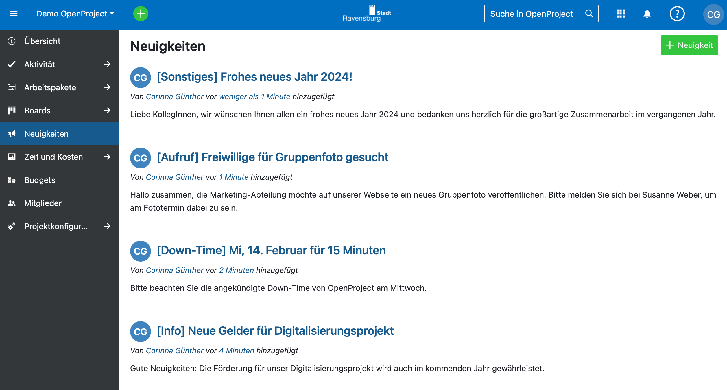 Screenshots: Stadt Ravensburg, OpenProject (Demo)