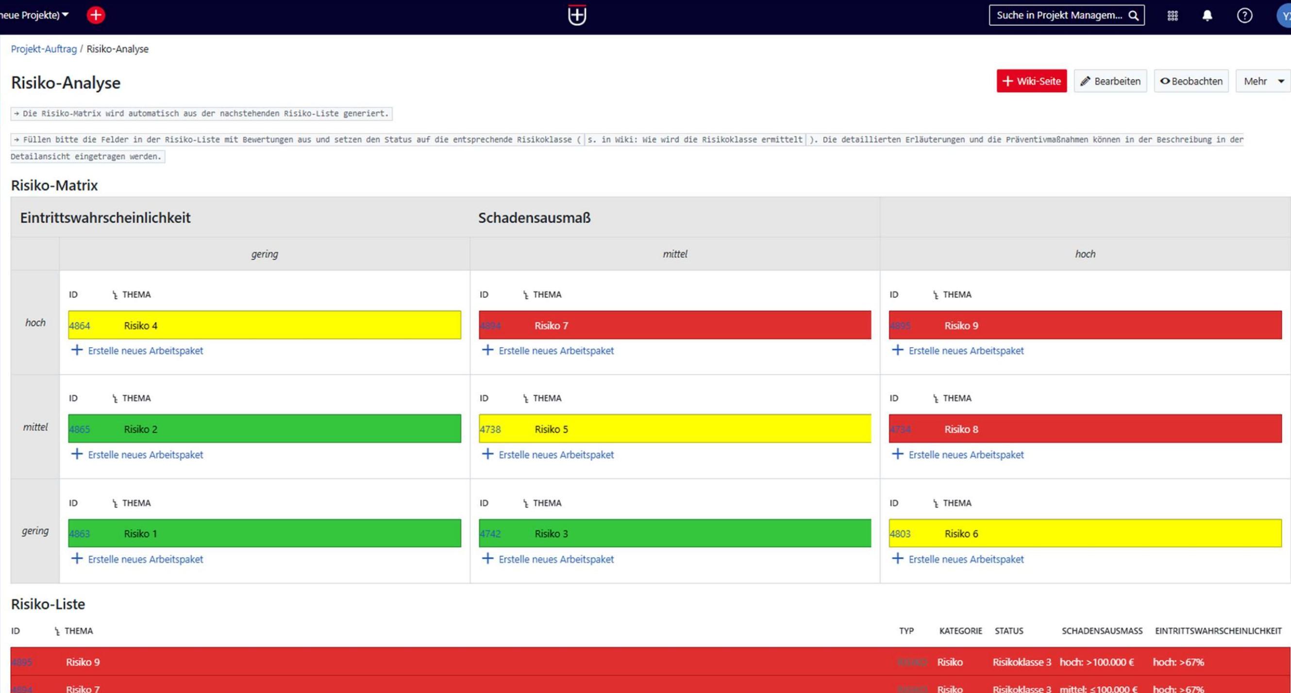 Detailed tracking and follow-up of risks and preventive measures in OpenProject.
